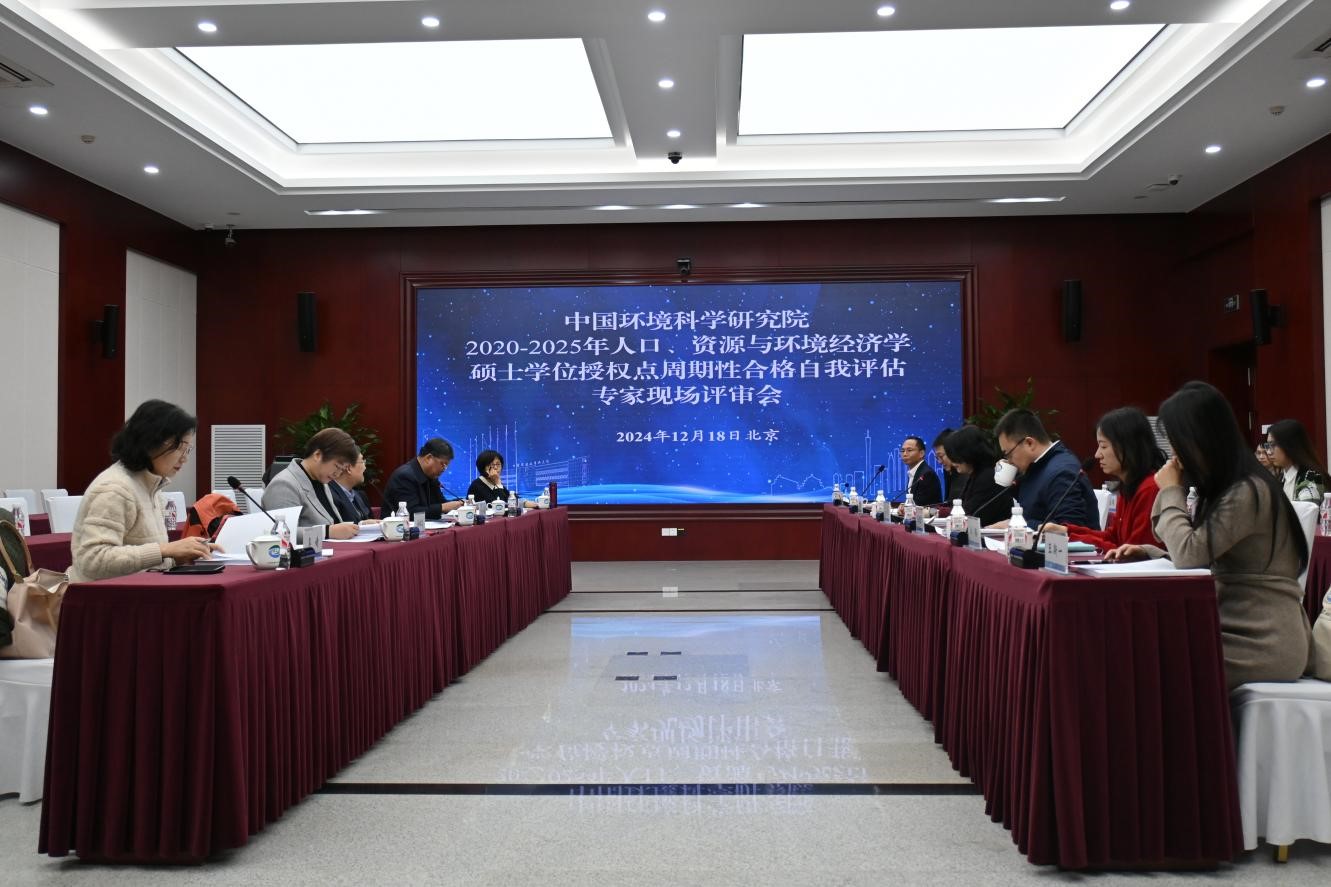 2024年12月18日,中國環(huán)境科學(xué)研究院(以下簡(jiǎn)稱(chēng)中國環(huán)科院)在北京組織召開(kāi)人口、資源與環(huán)境經(jīng)濟學(xué)碩士學(xué)位授權點(diǎn)周期性合格自我評估專(zhuān)家現場(chǎng)評審會(huì )。會(huì )議邀請國務(wù)院學(xué)位委員會(huì )學(xué)科評議組成員、中國人民大學(xué)經(jīng)濟學(xué)院劉守英教授,原國務(wù)院學(xué)位委員會(huì )學(xué)科評議組成員、原北京林業(yè)大學(xué)校長(cháng)宋維明教授,北京師范大學(xué)環(huán)境學(xué)院黨委書(shū)記徐琳瑜教授,北京師范大學(xué)經(jīng)濟與工商管理學(xué)院曲如曉教授,南開(kāi)大學(xué)環(huán)境科學(xué)與工程學(xué)院吳婧教授組成評審專(zhuān)家組,對中國環(huán)科院2020-2025年人口、資源與環(huán)境經(jīng)濟學(xué)碩士學(xué)位授權點(diǎn)建設情況進(jìn)行評估。中國環(huán)科院首席科學(xué)家喬琦研究員出席會(huì )議。學(xué)位授權點(diǎn)教師、學(xué)生代表及研究生院相關(guān)人員現場(chǎng)參會(huì )。