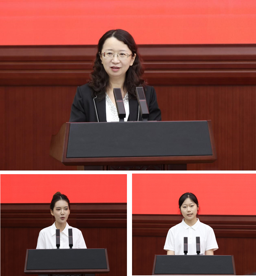 (左)博士研究生代表譚詒丹發(fā)言/(右)碩士研究生代表董欣悅發(fā)言